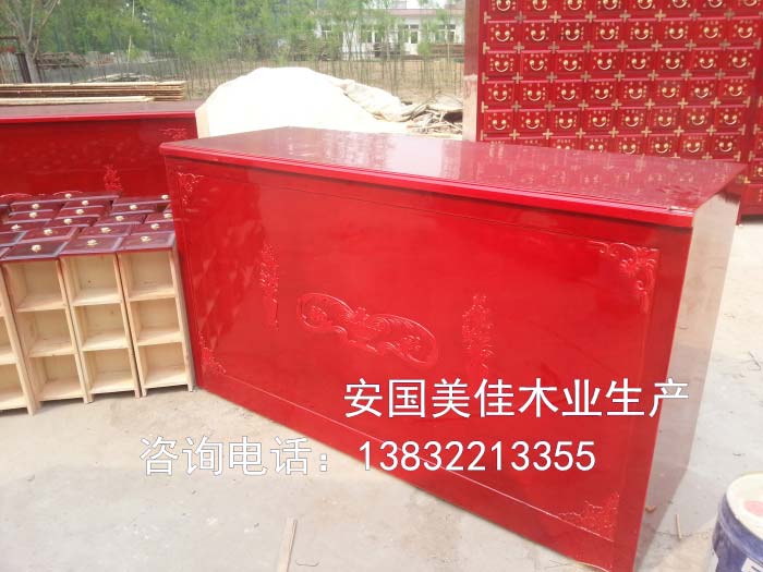中藥柜顏色---經(jīng)典亮光酒紅色烤漆。