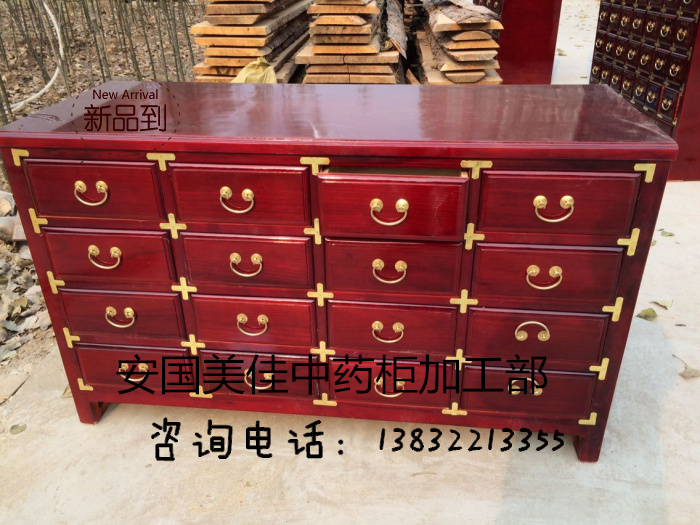 中藥柜用料---框架和抽屜選用優(yōu)質(zhì)樟松木,抽屜下面有五合板封底,防串味,抽屜底選用九厘板,中藥柜的后背兩側(cè)頂部選用五合板。