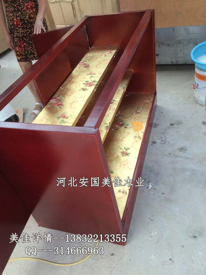 中藥柜尺寸---高215公分,寬170公分,厚60公分。抽屜面尺寸:寬18公分,高15公分。厚度17公分。中藥柜用料---框架和抽屜選用優質樟松木,抽屜下面有五合板封底,防串味,抽屜底選用九厘板,中藥柜的后背兩側頂部選用五合板。中藥柜款式---橫七豎八款。橫著七個抽屜,豎著八層抽屜,較下面的四個大抽屜,每個抽屜兩味藥,每個中藥柜可以裝155味藥。中藥柜顏色---經典仿紅木色花紋烤漆。中藥柜用漆---亮光或者半啞環保聚脂漆水房烤漆。中藥柜拉環---超精致純銅拉環。