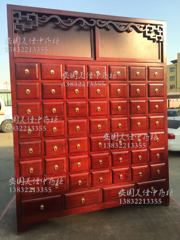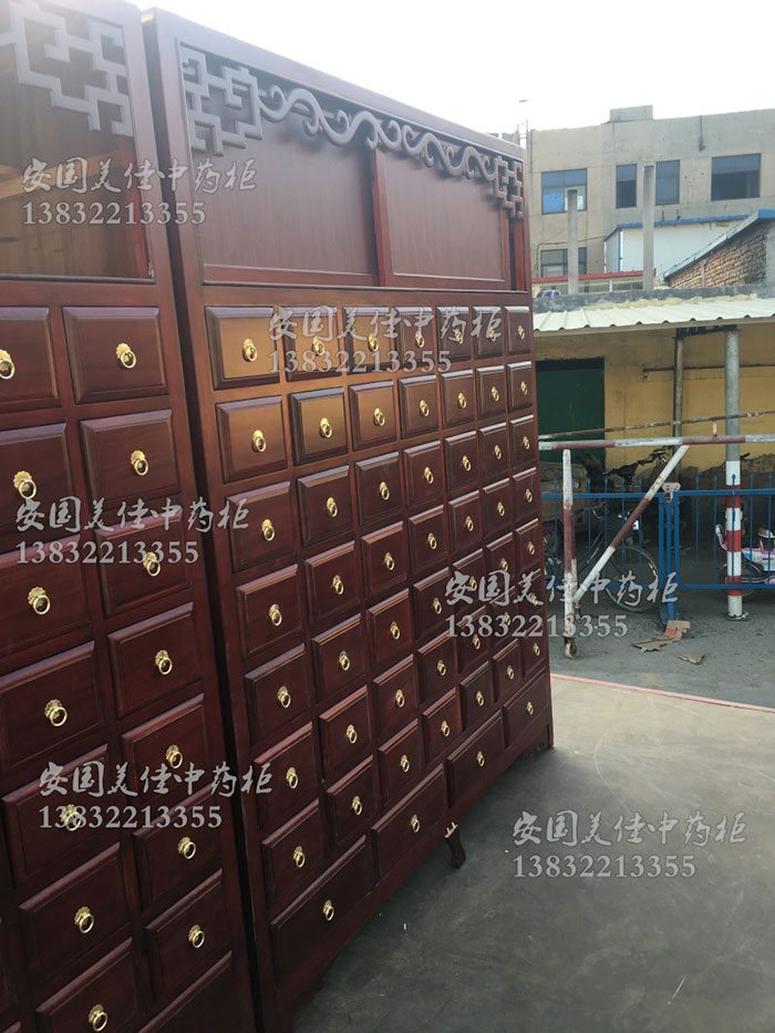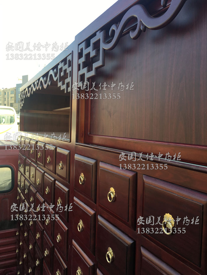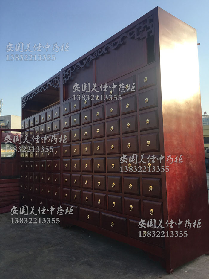 中藥柜款式---橫七豎八款。橫著七個(gè)抽屜,豎著八層抽屜,較下面的四個(gè)大抽屜,每個(gè)抽屜兩味藥,每個(gè)中藥柜可以裝155味藥。