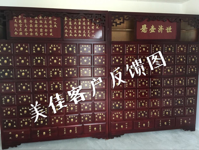 中藥柜顏色---經(jīng)典琥珀色花紋烤漆。