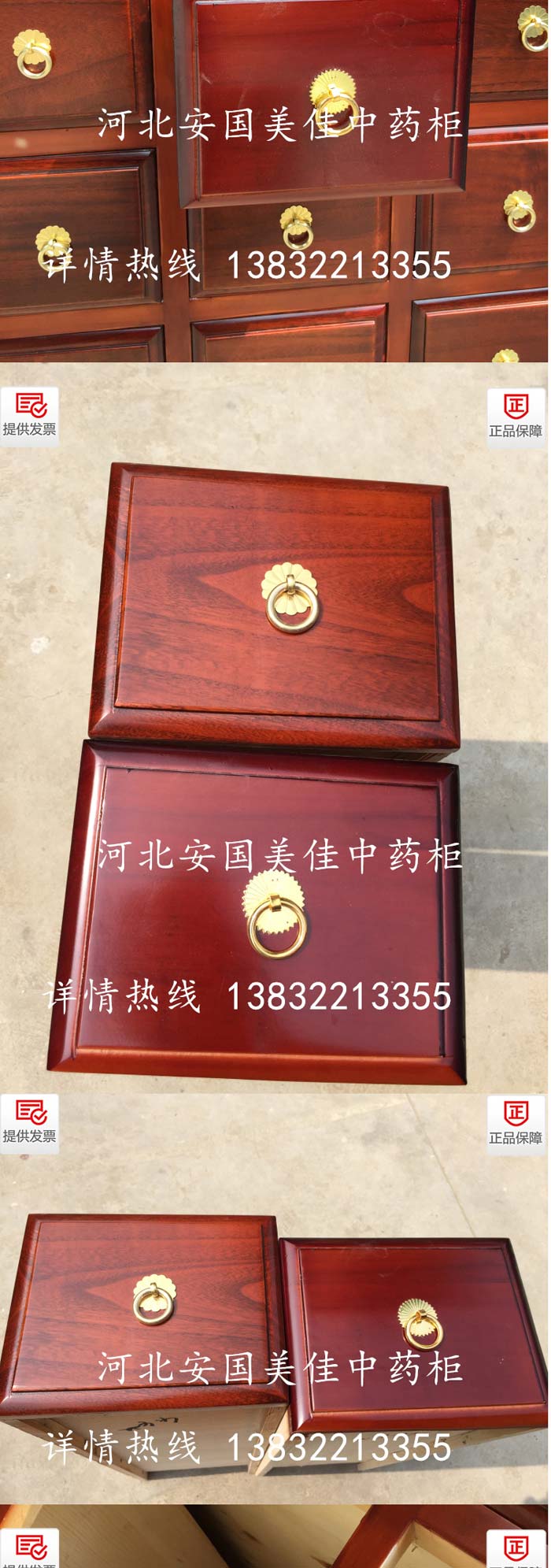 中藥柜尺寸---高215公分,寬170公分,厚60公分。抽屜面尺寸:寬17公分,高14公分。厚度18公分。中藥柜用料---框架和抽屜選用優質樟松木,抽屜下面有七合板封底,防串味,抽屜底選用實木板,中藥柜的兩側頂部選用實木板。中藥柜款式---橫七豎八款。橫著七個抽屜,豎著八層抽屜,較下面的四個大抽屜,每個抽屜兩味藥,每個中藥柜可以裝155味藥。中藥柜顏色---經典琥珀色花紋烤漆。中藥柜用漆---亮光或者半啞環保聚脂漆水房烤漆。中藥柜拉環---超精致純銅拉環。
